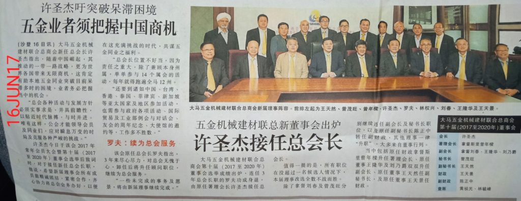 (16/06/2017) 许圣杰吁突破呆滞困境 五金业者须把握中国商机