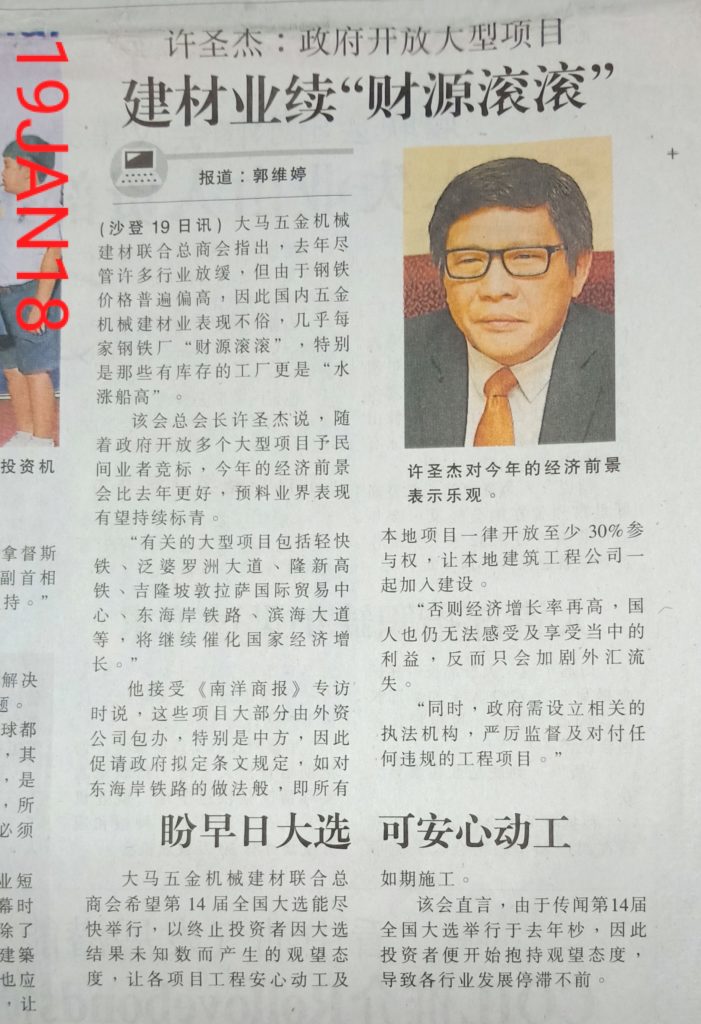 (19/01/2018) 许圣杰: 政府开放大型项目 建材业续“财源滚滚”